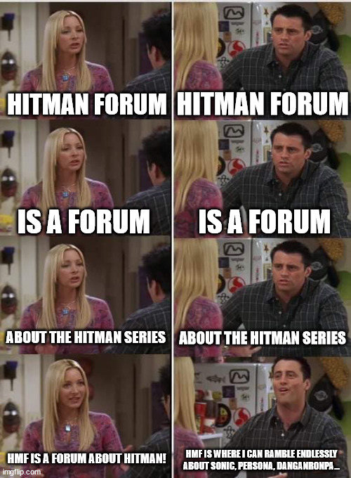 I mean we can only go on so long without HITMAN or IO related content. Our options are to disband whih would suck, be a place to talk about other stuff which is basically why we even have the other threads or become deranged shitposters like the Batman Arkham subreddit.