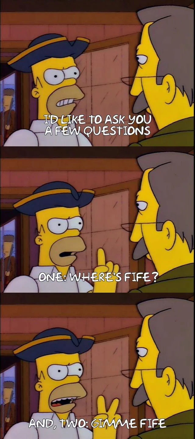 You see my queen, she has been most vocal on the subject of Fife. Where is Fife? When am I getting Fife? What aren’t you getting me Fife right now? And so on…