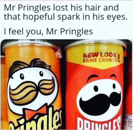 Mr Pringles now looks like when you get towards the bottom of the can. Alternatively it is a version of his old design before the 90s