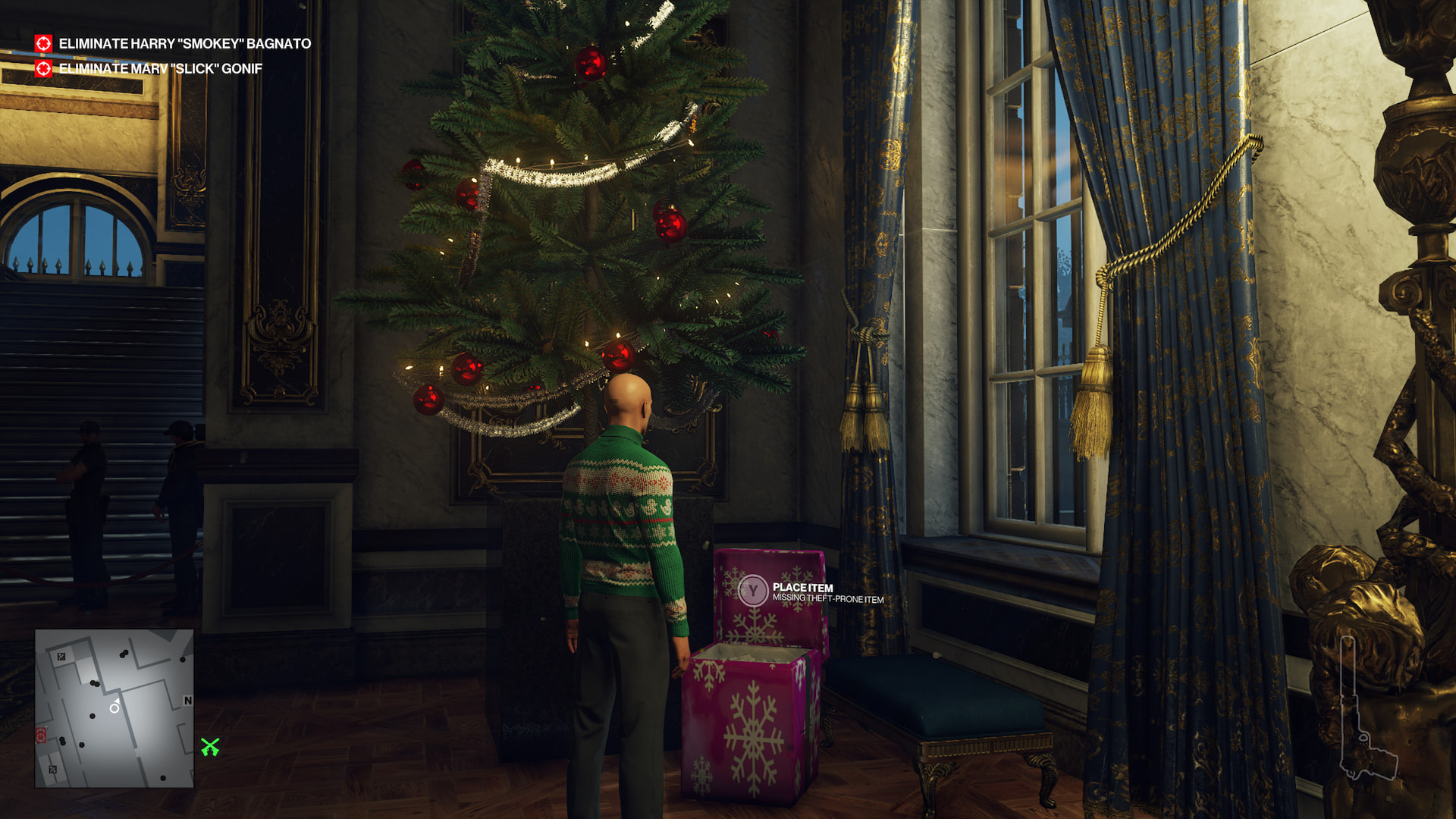 - The items are the usual 12 items sought by the burglars, as in"Santa’s Little Helper", but you don’t have to steal them before them, and you only need 6, but be careful, some will break if dropped in a subdue.
