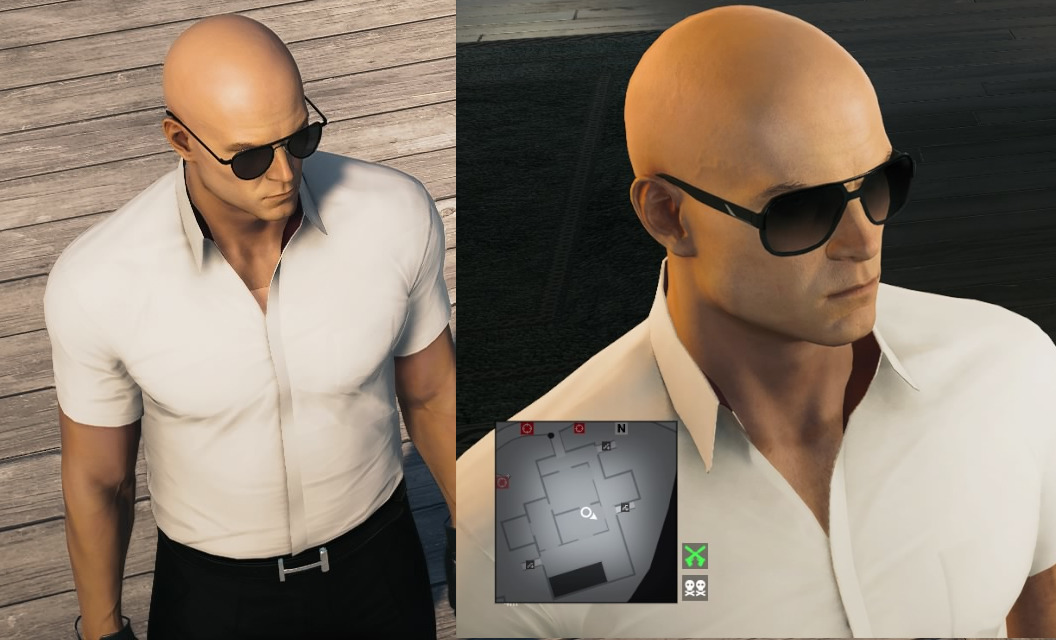 I found out a lot of stuff recently. I was playing Hitman 2016 when I realized that at certain angles you could see through 47. So I went onto Hitman 3 and sure enough, the issue is still there. Basically, on suits/disguises where 47 has a V-neck showing off a bit of skin, they didn’t model his chest far enough down so you can see through him if you look at him from a downward angle (or at a more horizontal angle if he’s crouched). Some examples are Rocco’s Kitchen Assistant in Sapienza or the Elite Soldier in Marrakesh.