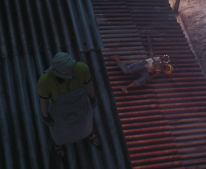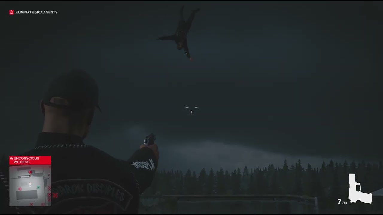 When you shoot this guy on Ambrose with a Tranquilizer while he is sitting on the ledge of the roof …