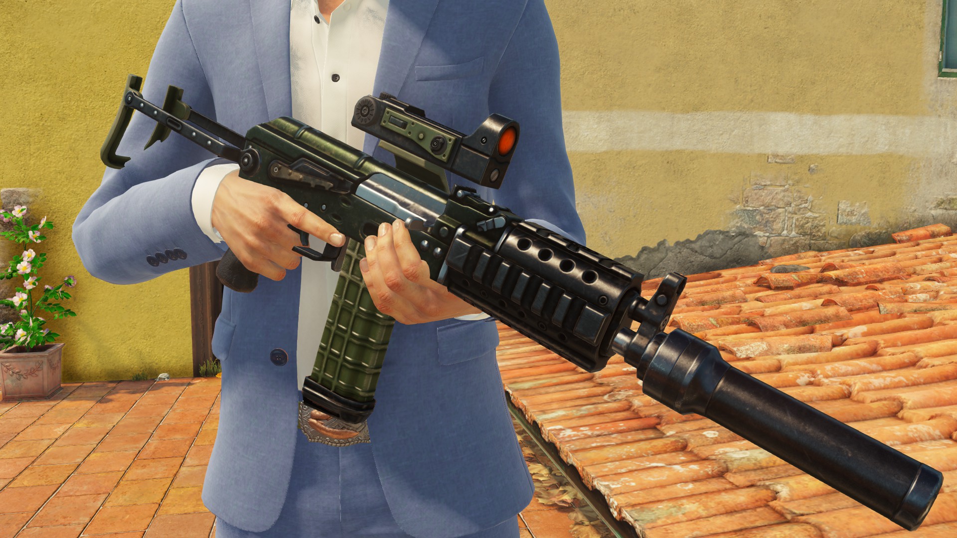 If an undisguised 47 approaches the test android in Miami then the robot informs 47 of Kronstadt’s hair regrowth options.