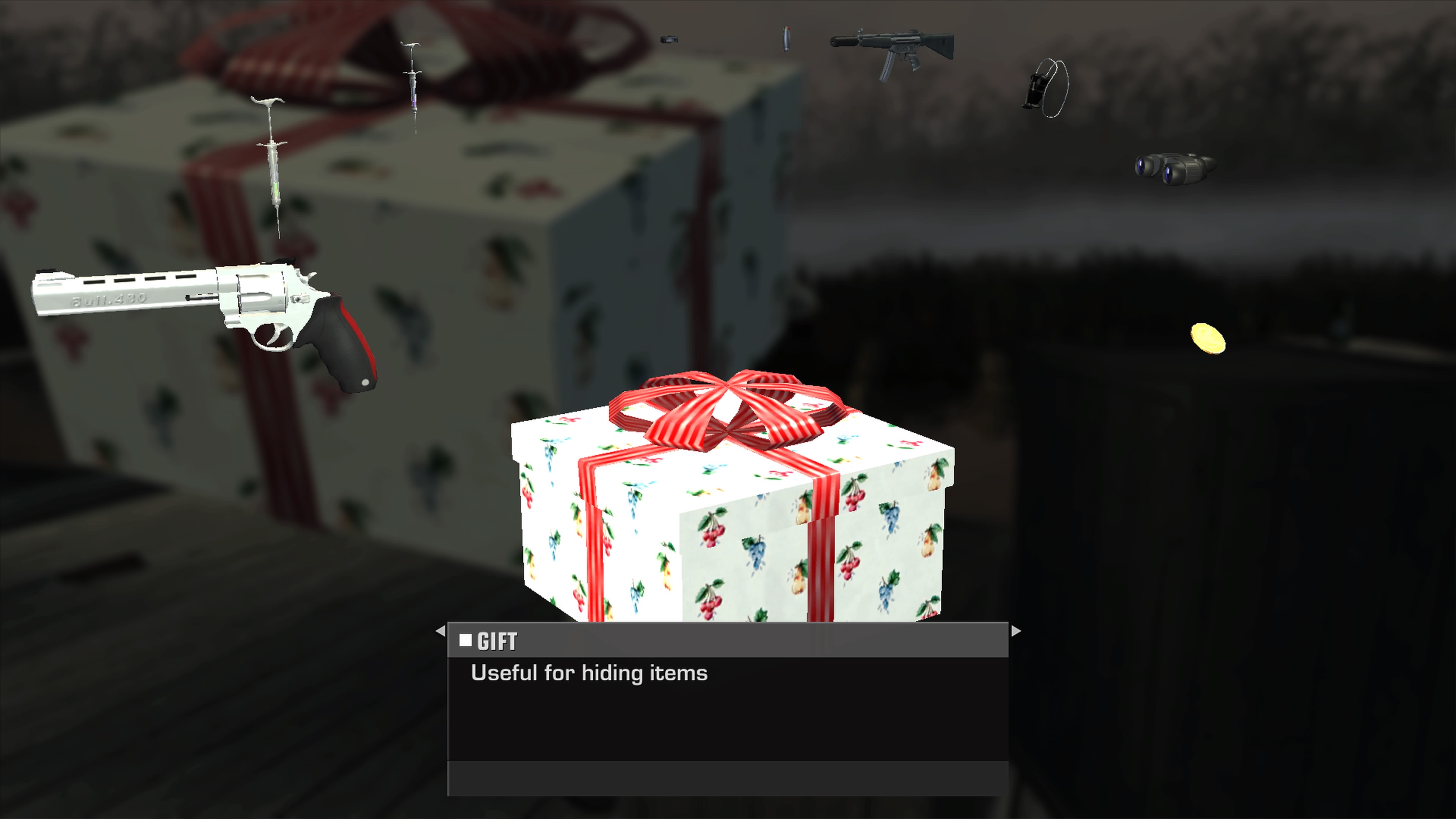 I found out that sthere is a gift Easter egg in til death do us apart, you shoot the bottles on a tree in the beginning area where the other guests are shooting and every time you shoot one bottle they cheer and when all of them are shot then a gift spawns and you can hide stuff in it, only tested with a mine: