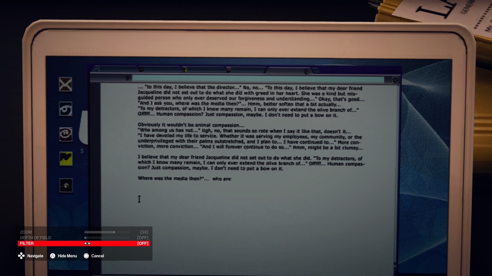 Looks like IOI just copied the actual lines from the actor’s script for that detail (You wouldn’t put in “yes yes that’s good” or “Ugh, that sounds so rote” when editing something. You just… edit it.)