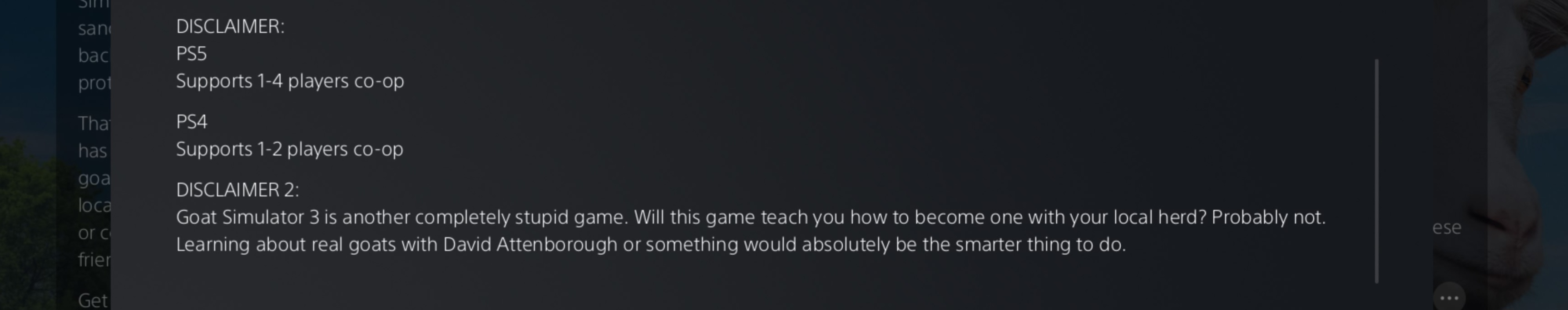 The store pages of the Goat Simulator series all have a Disclaimer asking you to spend your money elsewhere. Huh.