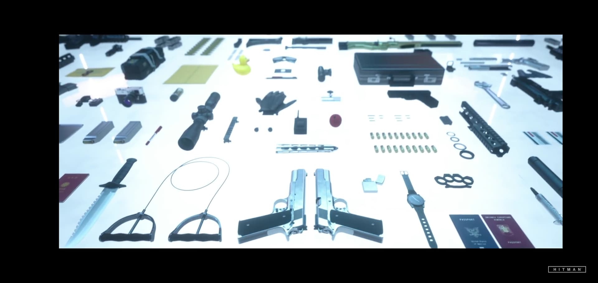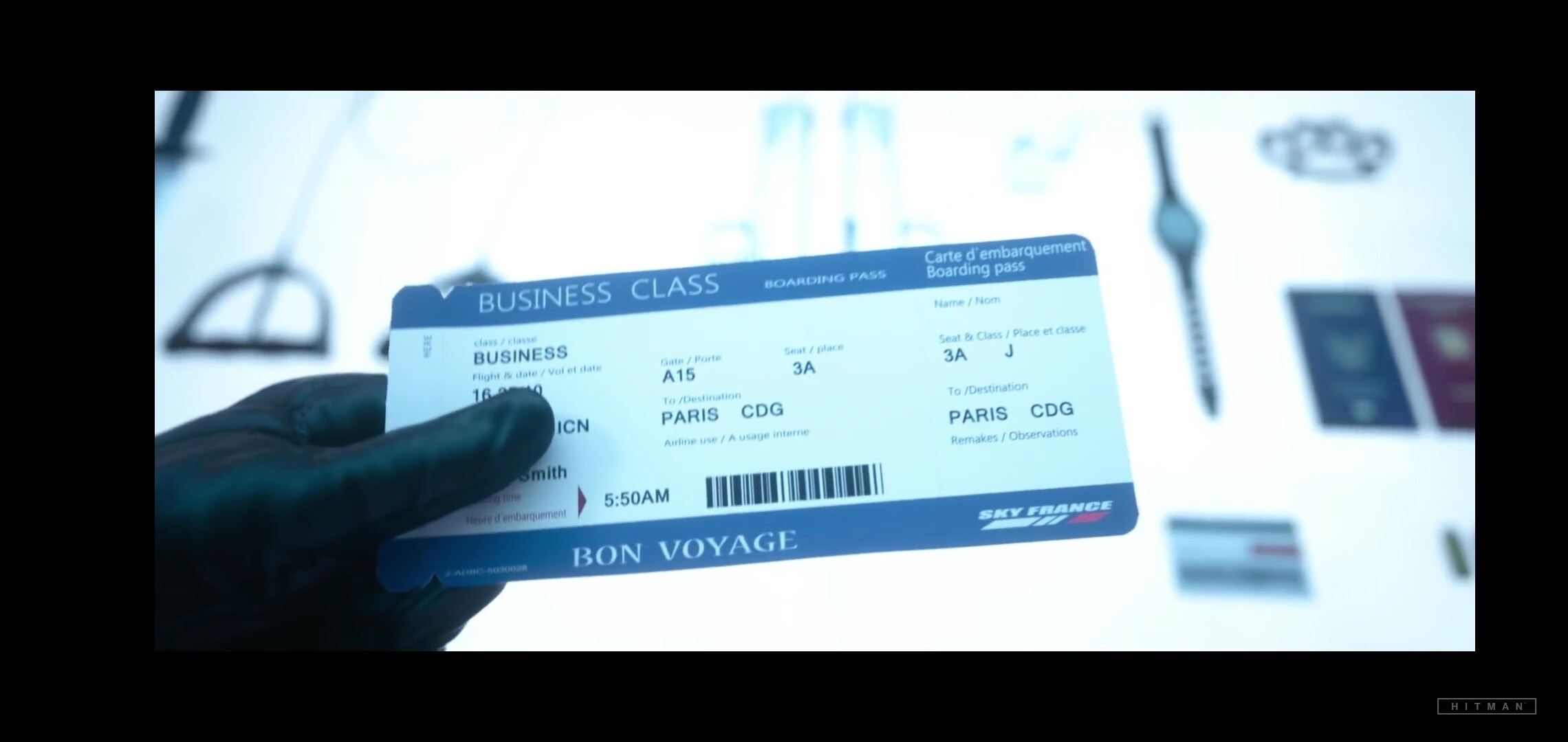 Could work as a form of menu where 47 would pick up a flight ticket to each location / mission and before that pick up weapons and tools needed for the levels.