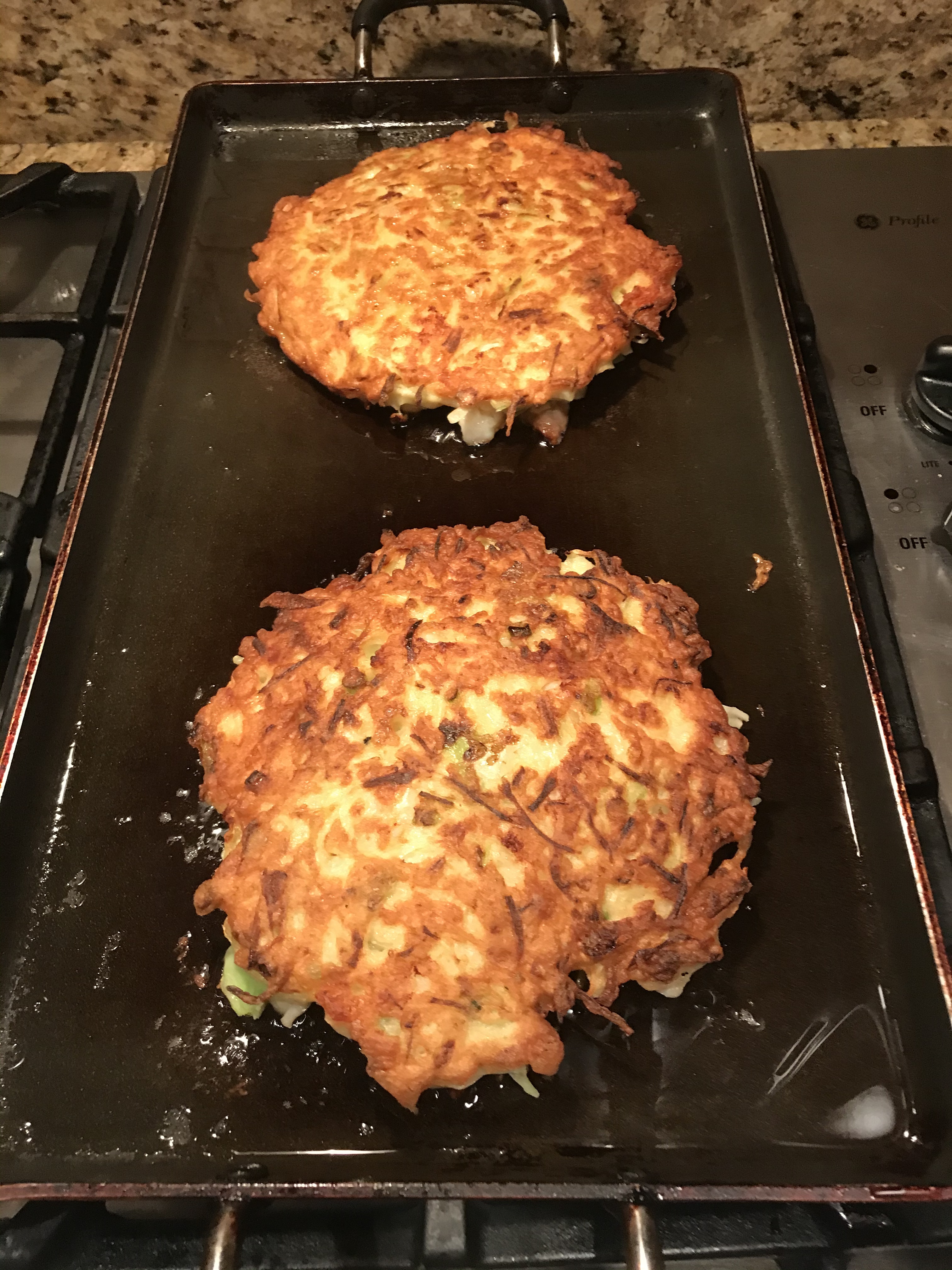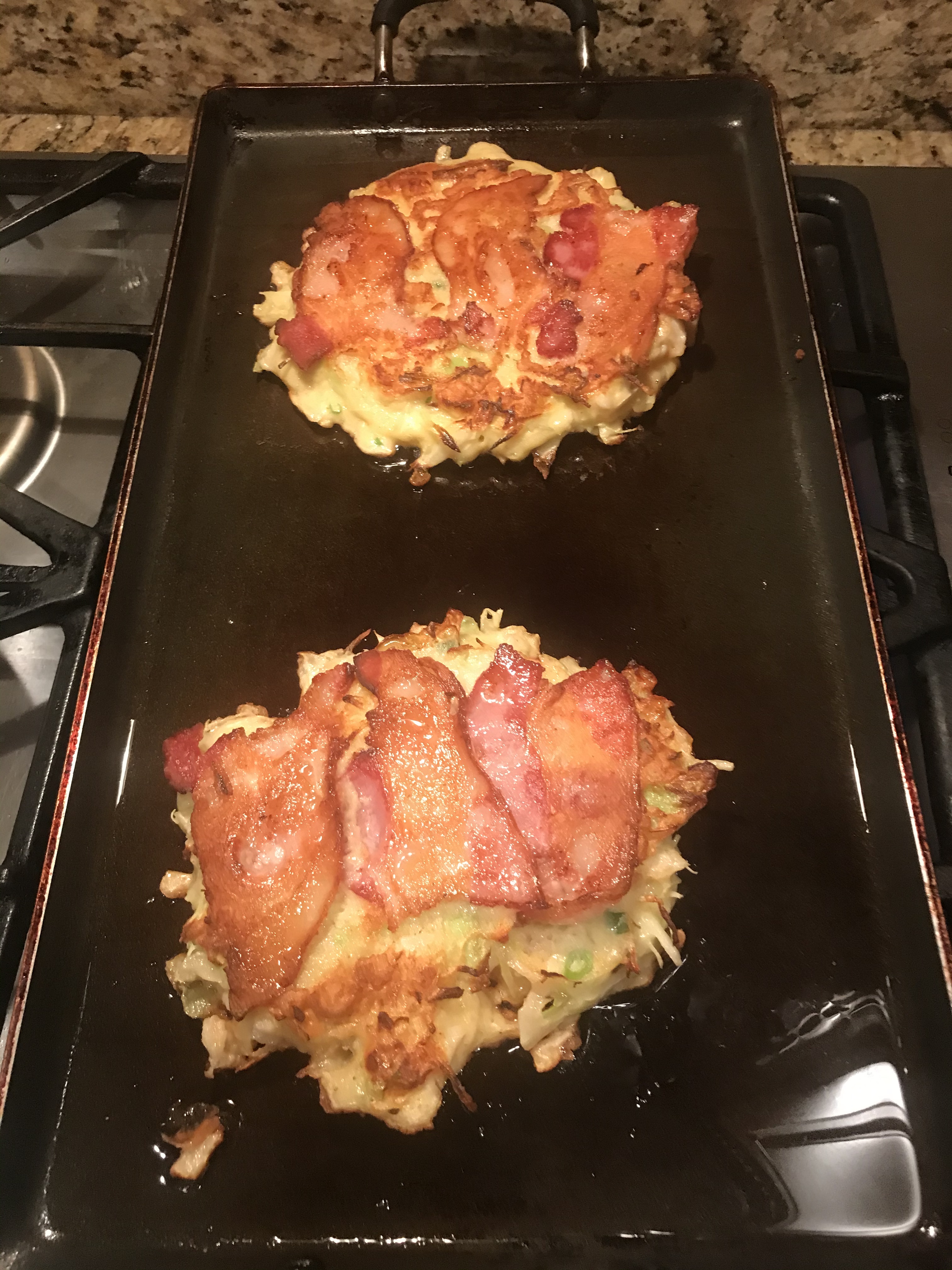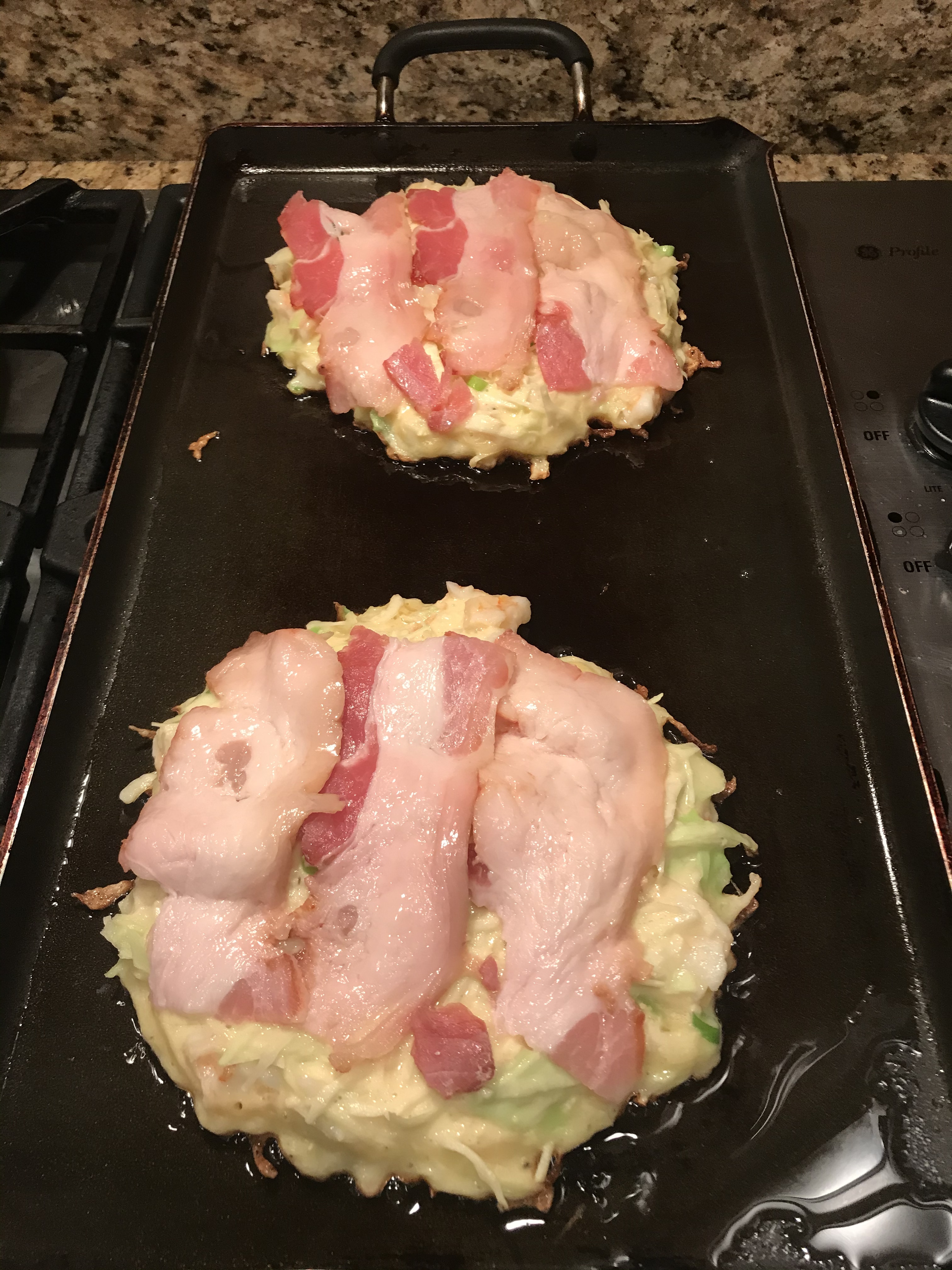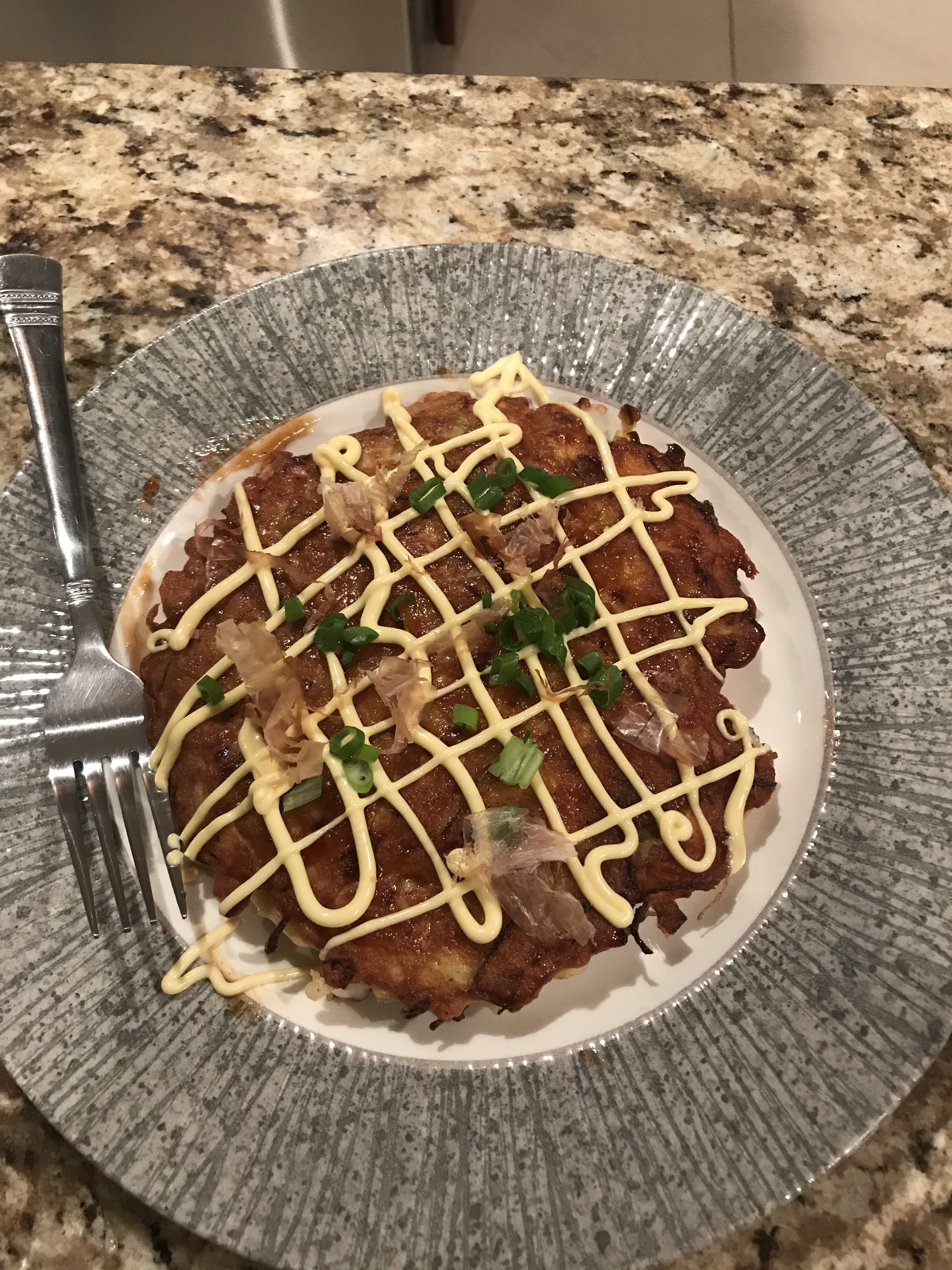 Pretty Excited about this one. First time making Japanese Okinomiyaki. So delicious. Made with Shrimp.