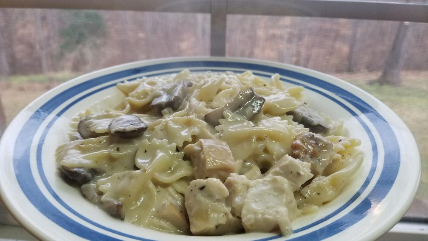 I made mushroom chicken farfalle with a white wine mascarpone sauce.