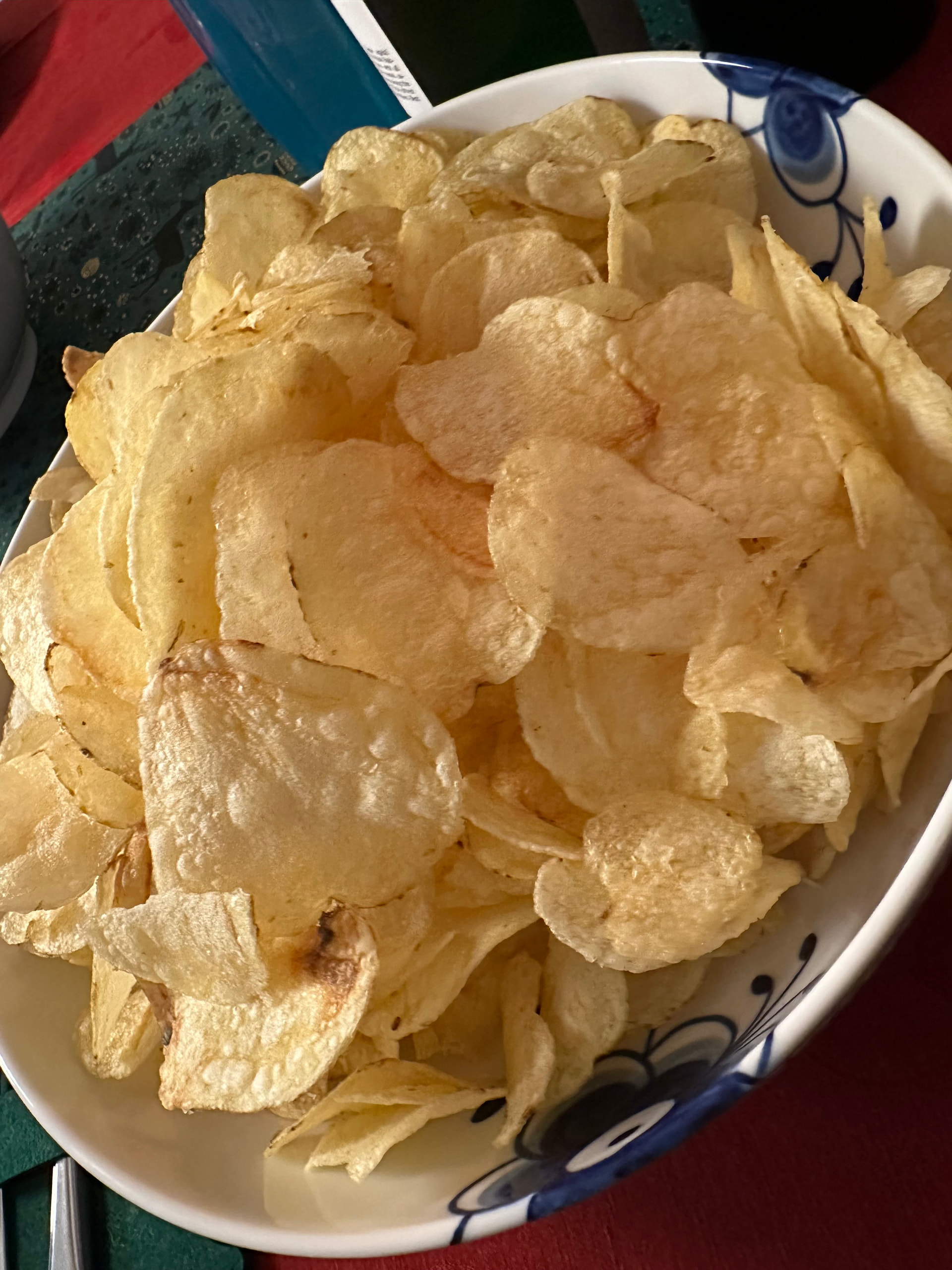 Eating chips/crisps as part of the dinner is more of a regional thing.