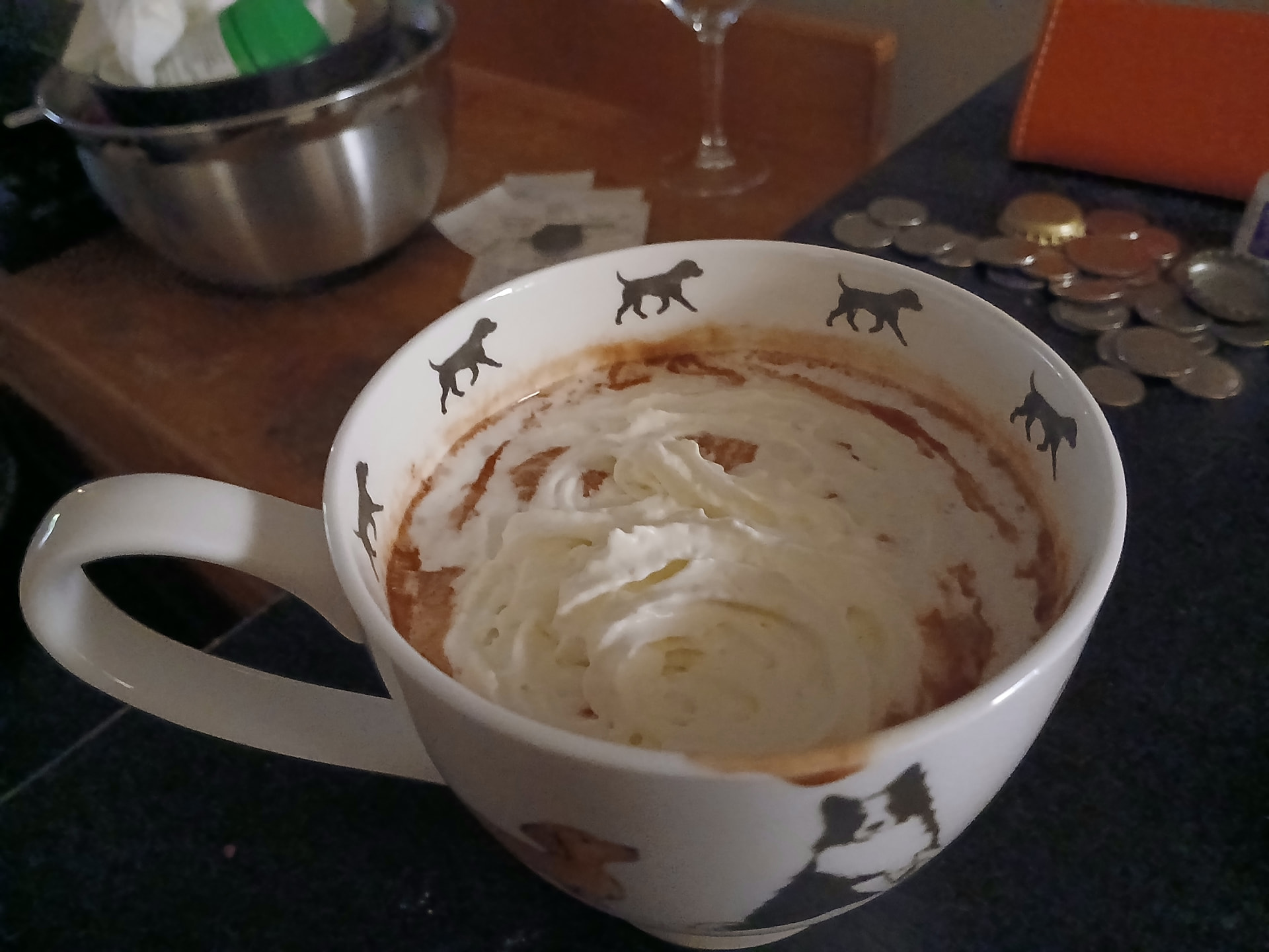My friend and I spent time in the kitchen making stuff to satisfy our sweets craving for New Years, my contribution was this fancy Italian-style hot chocolate. It was good but way too rich, so when I reheated some just tonight (second photo) I diluted it with some extra milk and it turned out much better.