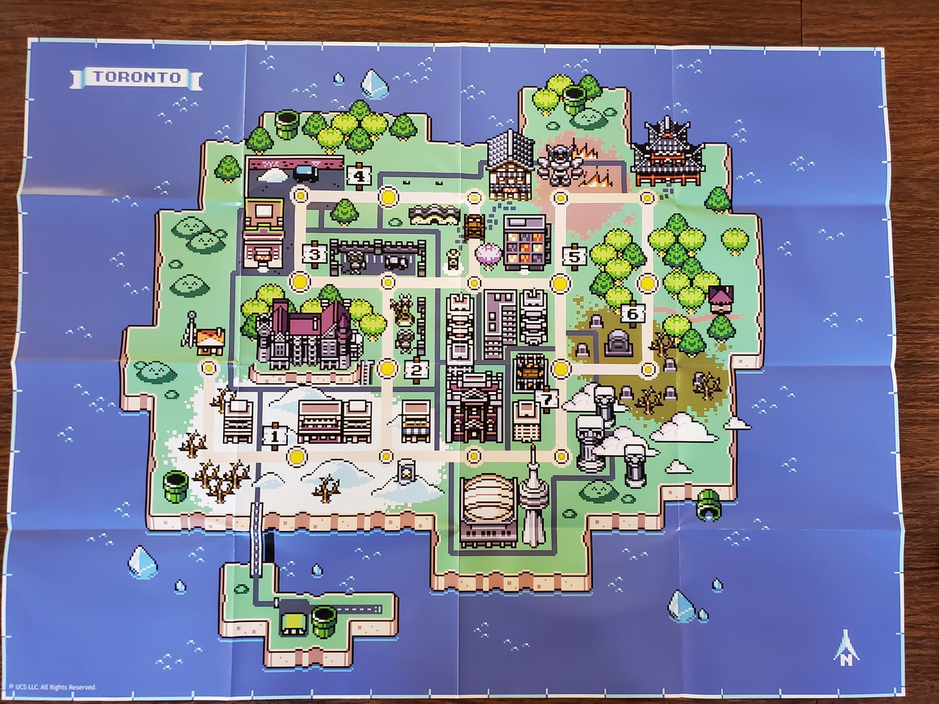 It’s got a fun little collection of goodies: a soundtrack CD, a sticker sheet, an instruction booklet (Extremely useful for an arcade-style game like this), a little Clash at Demonhead ticket stub to display, plus the exclusive Sonic Adventure 2-style packaging, the VHS-style clamshell case, and some holographic collectible card. Plus a poster of virtual Toronto.