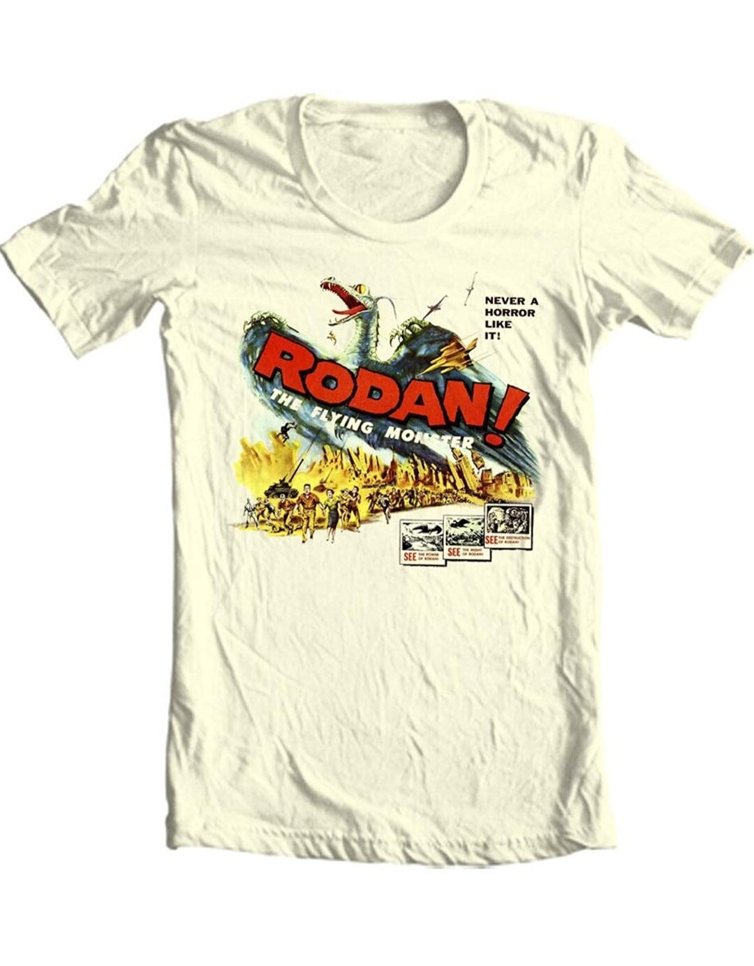 Awesome shirt, and the letters say Gojira, Godzillas Japanese Name, just like @Accidental_Kills98 said.