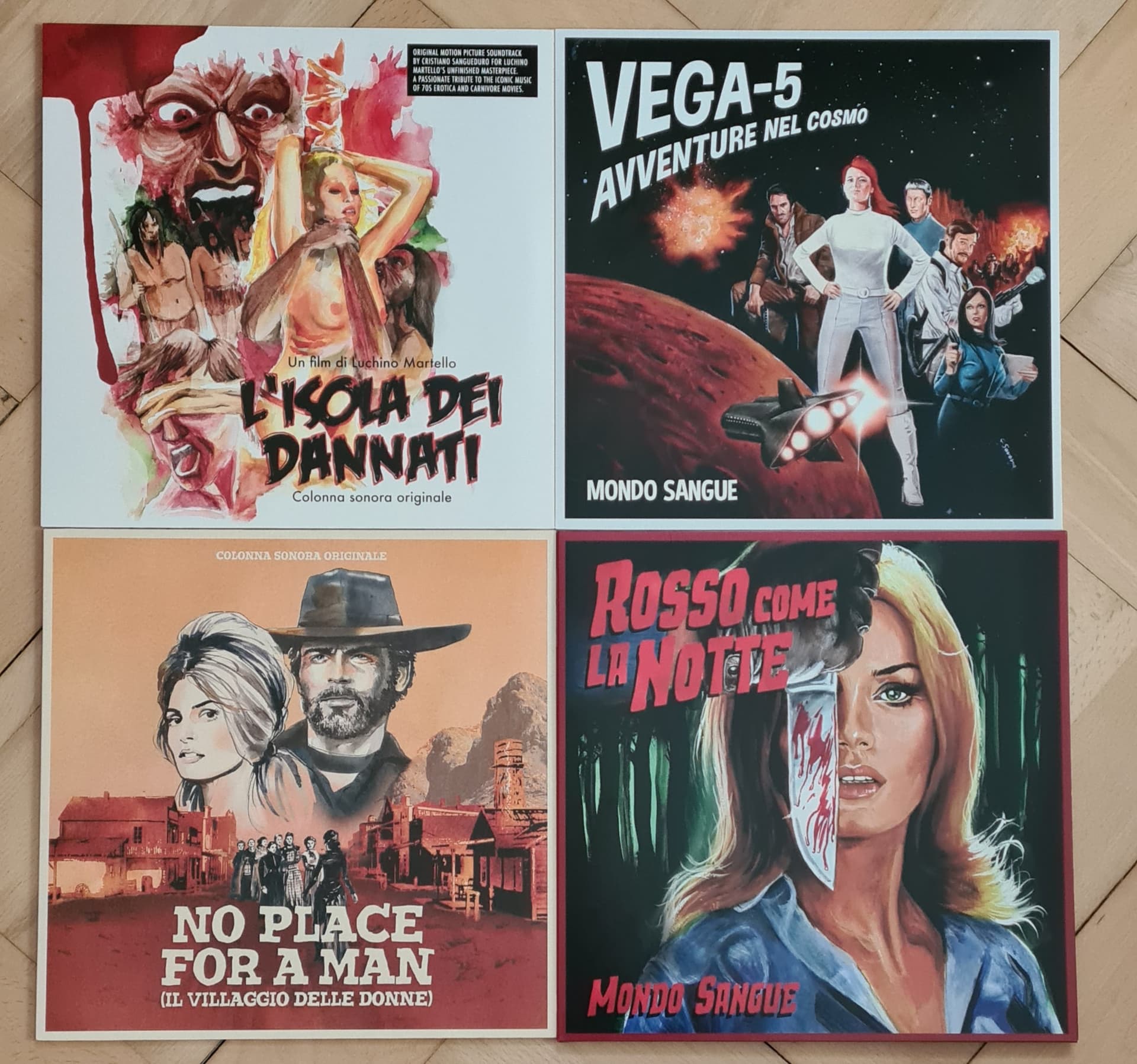 I really like soundtracks. Got about 200-300 different ones on vinyl. My newest additions are four mock soundtracks by the german band Mondo Sangue. They compose tracks for fictional movies in different genres. Really good stuff! (little inside joke for fans of german music: On “No Place For A Man” and on “Rosso come la notte” they have guest vocals by “Alberto Rocca”, an alias of Bela B a band member of famous german group “Die Ärzte”)