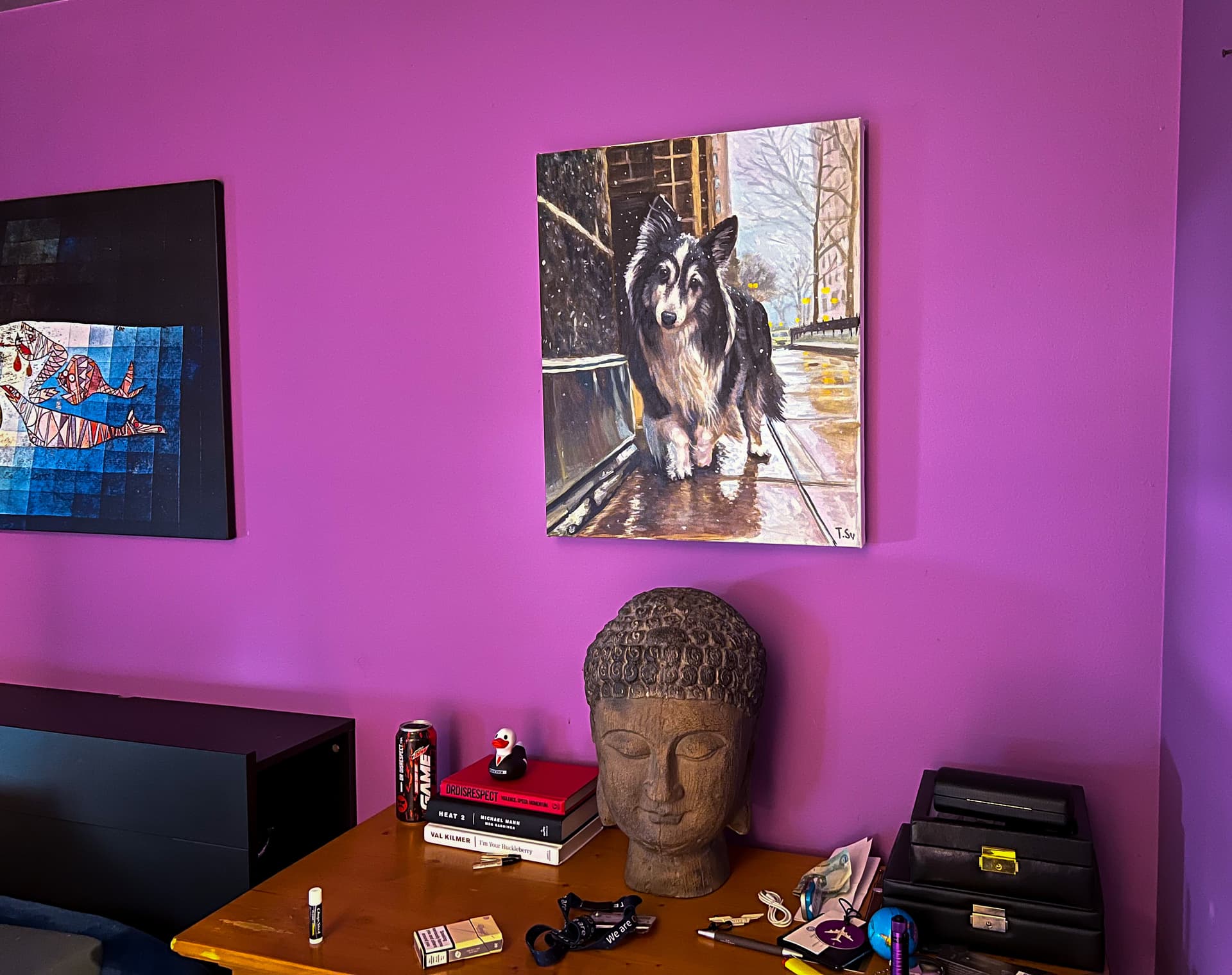 A painting of the late Grizzlie the doggy. My wife cried when she opened it.