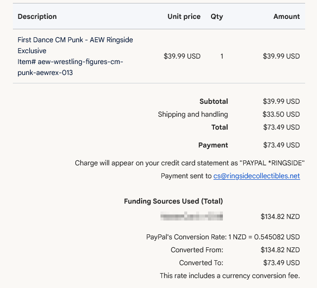 Their prices were quite steep. The order itself, shipping, and conversion rates all totalled to over $134 NZD in my country. Furthermore, my bank and invoice reads that I made two separate money out payments from two separate currency conversions.