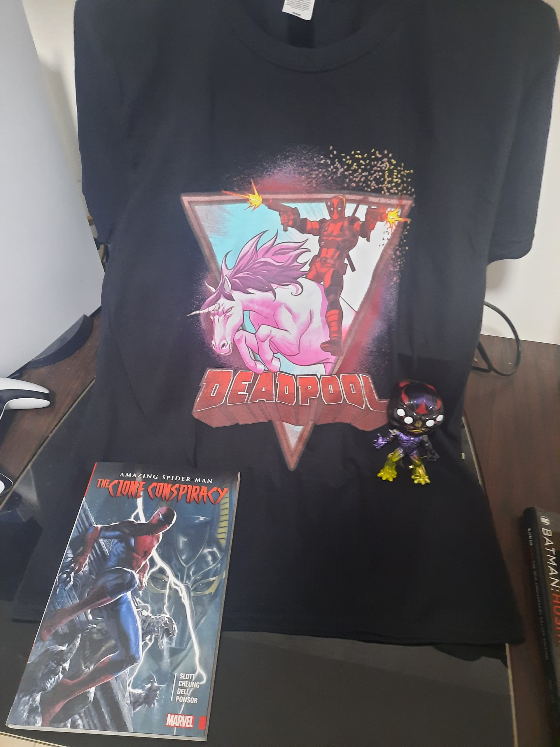 This is my gaming setup. All clean and black with David Bateson’s autograph hanging up like a religious item.